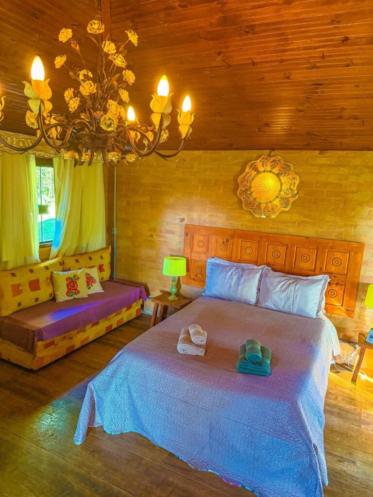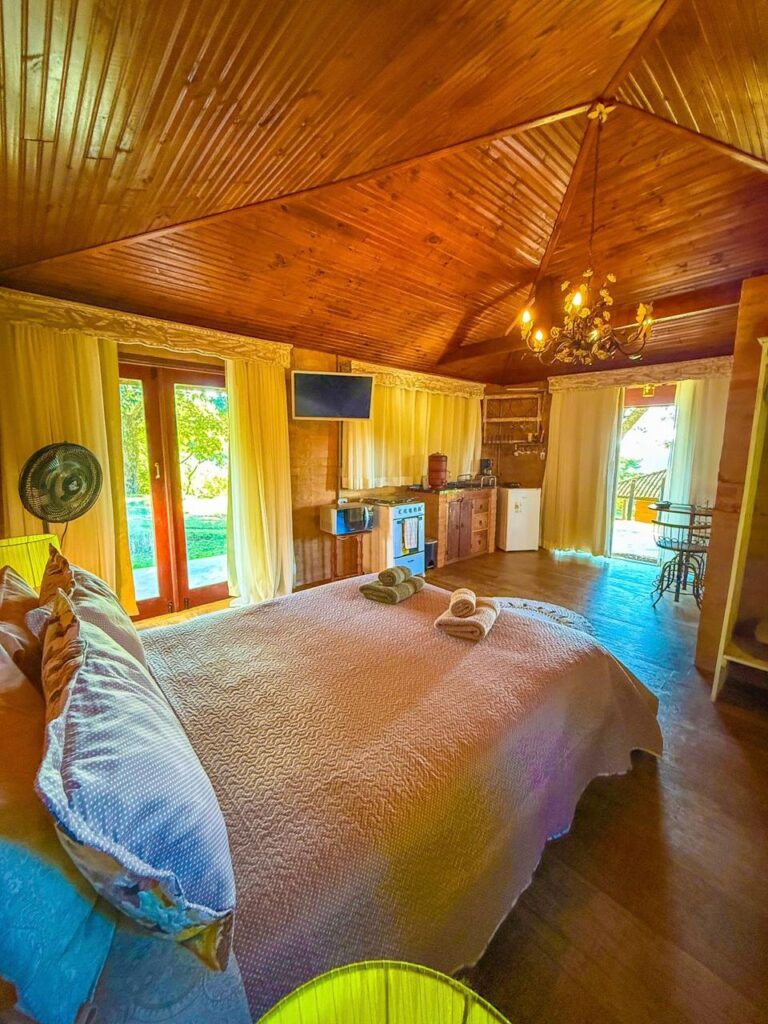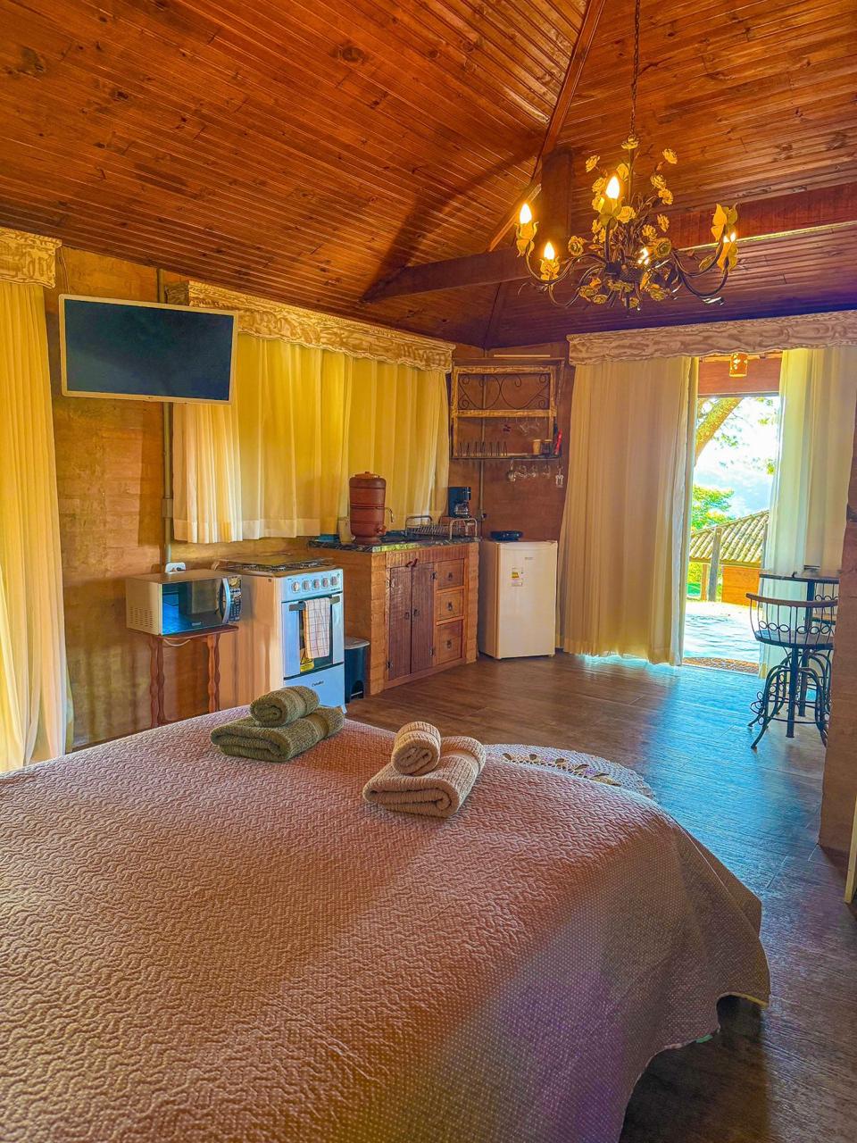 O Chalé Redário recebeu seu nome por ser o único chalé com seu redário privado, além das redes que oferecemos na sua varanda com vistas amplas das montanhas. O chalé possui uma cama muito confortável de casal, um sofá cama, lareira, ducha a gás com box com vistas para as montanhas e uma cozinha montada com eletrodomésticos e todos os utensílios.
